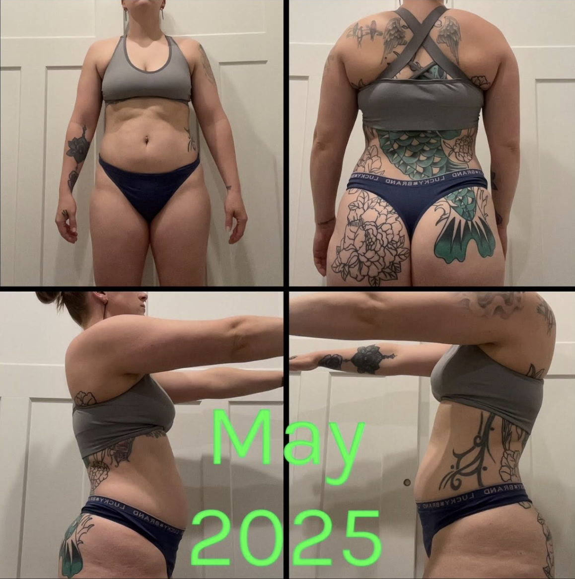 My first check in was so nerve wracking, coming from 3 moves in less than 2 years( from Indiana to Missouri), I was the biggest I’ve ever been. 185lbs. Now as of August 18, 2025 I am 162lbs and stronger than I’ve ever been. I cut out gluten, dairy and soy and my life changed forever! As a woman I have struggled with PMDD my whole life, I never knew how much your diet can affect your health and cycle! I no longer need medication for my cycles and no longer experience cysts! As well as, my sleep significantly improved along with my skin and inflammation.